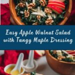 In a small bowl, combine olive oil, apple cider vinegar, Dijon mustard, maple syrup, salt, and freshly ground black pepper. Whisk vigorously until the mixture is fully emulsified and smooth. This dressing is light yet bold, enhancing the crispness of the apples and the nuttiness of the walnuts beautifully.
