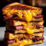BBQ Brisket Melts are a deliciously hearty sandwich featuring tender shredded beef brisket coated in tangy barbecue sauce, melted cheddar and mozzarella cheeses, and caramelized red onions all toasted to perfection on buttery sourdough bread. This quick stovetop recipe is perfect for a comforting lunch or dinner with rich smoky flavors and gooey melted cheese.