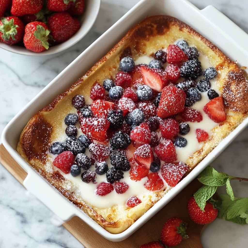 This Berry French Toast Casserole is a delightful, make-ahead breakfast dish featuring cubed thick bread soaked in a rich custard with mixed berries. Baked to golden perfection, it combines sweet, creamy, and fruity flavors for a crowd-pleasing morning treat perfect for gatherings or a cozy weekend brunch.