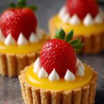- Add Strawberry Topping: Place halved fresh strawberries neatly on top of each filled tartlet for an attractive and fresh finish.