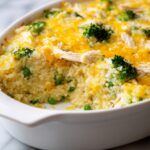 This comforting Broccoli, Rice, Cheese, and Chicken Casserole combines tender cooked rice, shredded chicken, fresh or frozen broccoli, creamy soups, and melted cheddar cheese baked to perfection. It’s a hearty, easy-to-make dish ideal for family dinners, offering a rich blend of creamy, cheesy, and savory flavors all in one satisfying casserole.