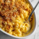If you want to add a golden, crunchy topping, preheat your oven to 375°F. Transfer the mac and cheese to a buttered 9×13-inch dish. Mix panko breadcrumbs with melted butter and Parmesan, then sprinkle evenly over the top. Bake for 20 to 25 minutes until bubbly and beautifully golden. Let it rest for a few minutes before serving to allow those crispy edges to set perfectly.