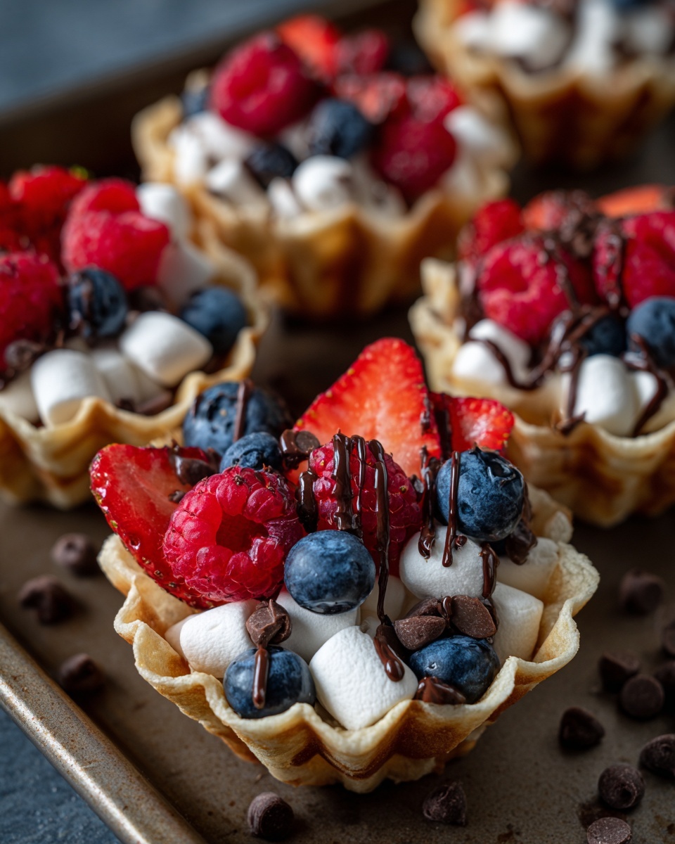 To warm up leftover cones, place them back on the grill or wrap in foil and heat them gently in an oven at 300°F (150°C) for about 5 minutes, just until the marshmallows and chocolate get soft again. Avoid microwaving, as it can make cones soggy and unevenly heated.