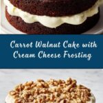 - Assemble the Cake: Once the cakes have fully cooled, place one layer on a serving plate or cake stand. Spread a generous amount of cream cheese frosting over the top. Place the second cake layer on top and frost the top and sides evenly. Garnish with additional chopped walnuts around the top or sides for added texture and presentation.
