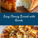 This Cheesy Bread recipe is an easy, rustic loaf combining self-rising flour and creamy Greek yogurt with flavorful cheddar and Parmesan cheeses. Perfectly baked to a golden crust and brushed with butter, it makes a deliciously cheesy, savory treat ideal for snacking or alongside meals.