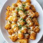 A comforting and hearty Chicken Alfredo Tater Tot Casserole combining tender shredded chicken in creamy Alfredo sauce, topped with crispy tater tots and a blend of melted mozzarella, cheddar, and Parmesan cheeses. Perfect for a family-friendly dinner that’s easy to prepare and bakes to golden perfection.