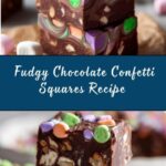 Chocolate Confetti Squares shine with a cup of freshly brewed coffee or a glass of cold milk. For a fun brunch or party spread, serve alongside fresh berries or a simple fruit salad to add a refreshing contrast, balancing the depth of the chocolate and sweetness of the sprinkles.
