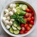 A refreshing and light Cucumber Caprese Salad featuring crisp cucumber, creamy mozzarella pearls, sweet tomatoes, and fresh basil, all tossed in a tangy balsamic vinaigrette. Perfect as a quick appetizer or side dish that comes together in minutes.