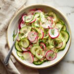 A fresh and vibrant Cucumber Radish Salad featuring thinly sliced cucumbers and radishes tossed in a tangy lemon-Dijon dressing with fresh dill. This quick and easy salad is perfect as a light side dish or a refreshing snack.