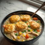 This comforting Easy Pie Soup with Slow Cooker Chicken combines tender shredded chicken with a medley of vegetables in a creamy, herb-infused broth. Slow-cooked to perfection for hours, this hearty soup is beautifully complemented by crispy baked pie crust, making it a perfect cozy meal for any day.