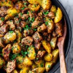 This Garlic Butter Steak Bites and Potatoes recipe offers a quick and flavorful one-pan meal featuring tender, seared sirloin steak cubes and crispy, seasoned Yukon Gold potatoes all cooked in a rich garlic butter sauce. Perfect for a hearty weeknight dinner, this dish combines aromatic herbs and tender beef with golden potatoes for satisfying comfort food.