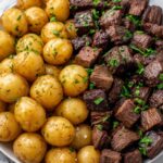 Rich and flavorful Garlic Butter Steak Bites paired with crispy roasted potatoes make a perfect hearty and satisfying meal. Cubed sirloin steak is seared to perfection and tossed with golden potatoes roasted with aromatic herbs and a luscious garlic butter sauce, delivering an irresistible combination of textures and savory tastes.