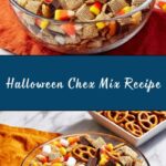 Pair this sweet and salty snack with some simple fall-inspired drinks like hot apple cider or a creamy pumpkin spice latte. If you’re serving a bigger party spread, add some fresh fruit slices or a cheese platter to balance out the sugary goodness of the Halloween Chex Mix Recipe.