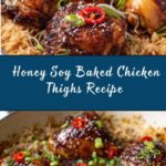 This Honey Soy Baked Chicken Thighs recipe features tender, juicy chicken thighs marinated in a sweet and savory blend of honey, soy sauce, garlic, and ginger. Baked to perfection with crispy skin and garnished with sesame seeds and green onions, this dish is a flavorful and easy-to-make meal perfect for weeknight dinners.
