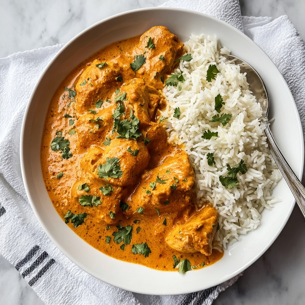 A rich and creamy Indian Butter Chicken recipe featuring tender boneless chicken simmered in a buttery tomato-based sauce infused with aromatic spices and finished with heavy cream. This classic North Indian dish is perfect for a comforting and flavorful meal served with rice or naan.