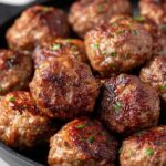 For a fun twist, serve the meatballs on toasted baguette slices topped with melted provolone for an instant meatball slider. Another idea is to skewer them with veggies and serve as a party appetizer with dipping sauces like tzatziki, marinara, or spicy aioli.