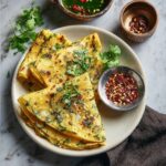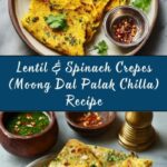 Lentil & Spinach Crepes, also known as Moong Dal Palak Chilla, are thin, savory Indian pancakes made from soaked yellow moong dal and fresh spinach. These nutrient-packed crepes are flavored with cumin, turmeric, and green chili and offer a delicious, gluten-free breakfast or snack option that pairs perfectly with chutney or yogurt.