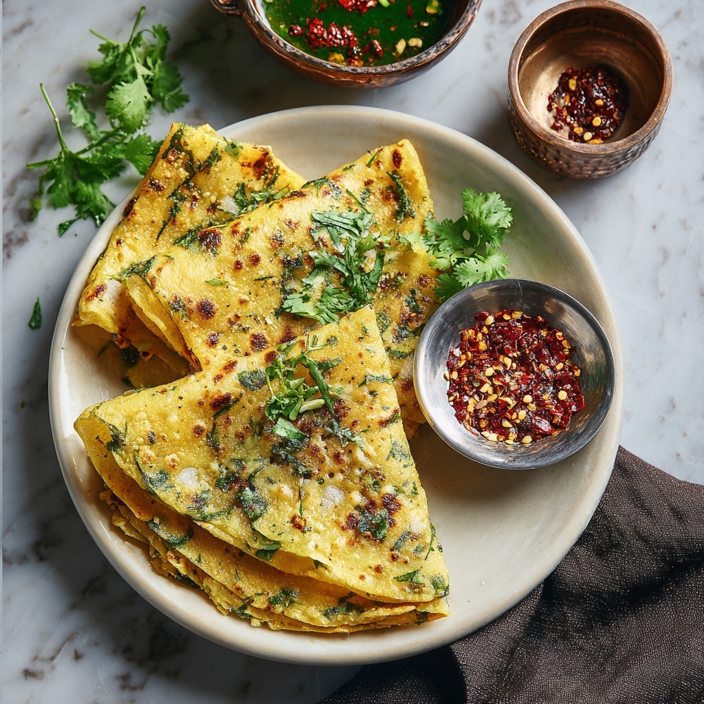 Top the crepes with a squeeze of fresh lemon juice or sprinkle them with finely chopped fresh coriander for a bright, herbal touch. You can also add a pinch of chaat masala to spice things up with tangy notes. These small touches elevate the dish and cater to your personal flavor preferences.