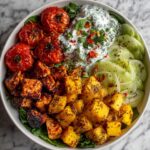 - Assemble the Bowl: Place a base of cooked rice or cauliflower rice in each bowl. Top with sliced chicken, cherry tomatoes, cucumber slices, thinly sliced red onion, and kalamata olives. Add a generous scoop of dairy-free tzatziki sauce on the side. Optionally, sprinkle feta cheese over the bowl for added creaminess.