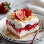 This No Bake Strawberry Cheesecake Lasagna is a luscious, layered dessert perfect for summer. Featuring a buttery graham cracker crust topped with a creamy, fluffy cheesecake layer and a fresh strawberry gelatin topping, this easy-to-make recipe requires no oven and minimal prep time. It’s ideal for gatherings and can be prepared a day in advance, making it a convenient and delightful treat.