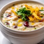 This chili pairs beautifully with crispy tortilla chips, which offer the perfect crunch alongside the creamy texture. You can also serve it with warm cornbread or a simple green salad for a complete and balanced meal that hits all the right notes.
