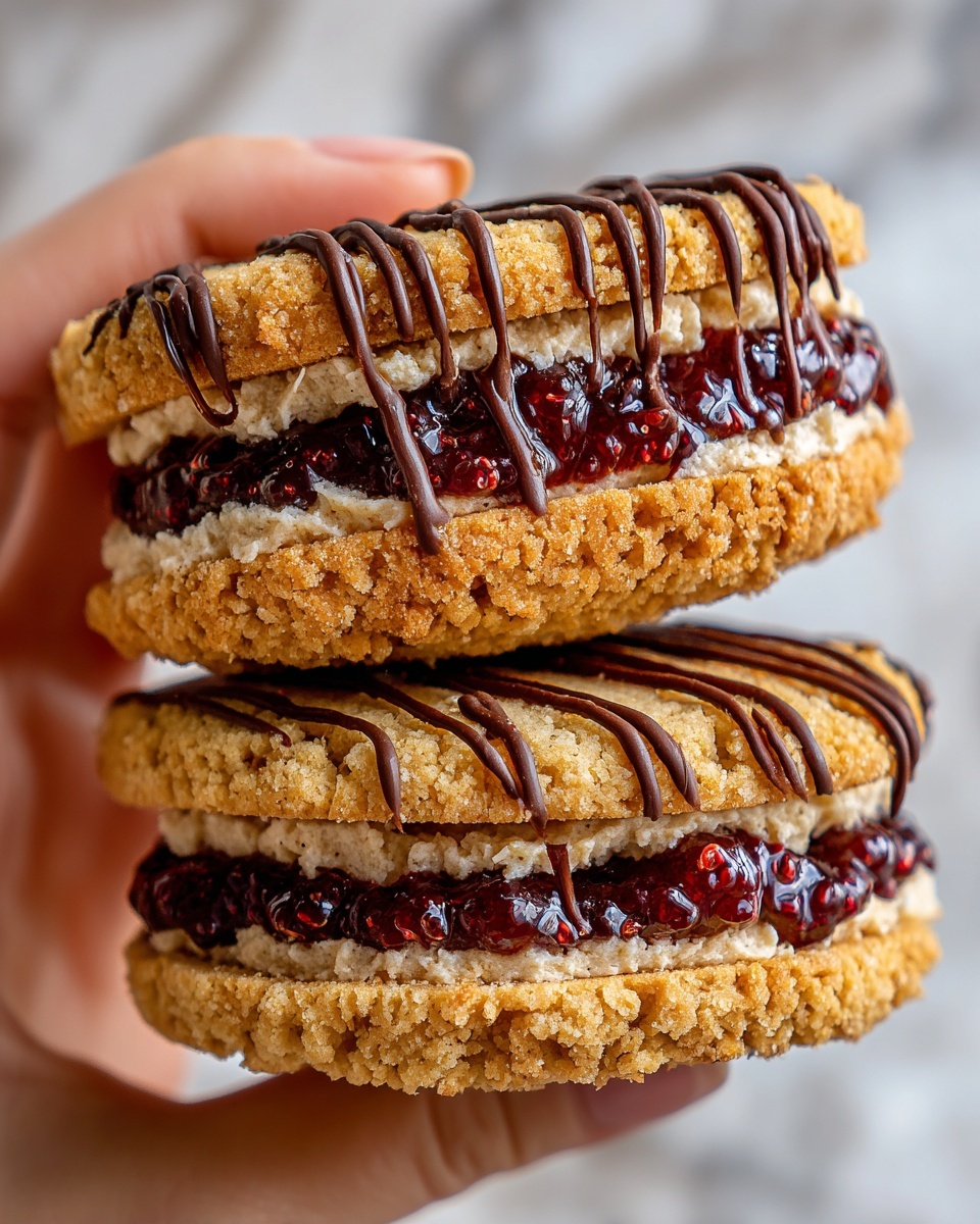 You can freeze the unbaked cookie dough balls before assembling if you want to prepare in advance. Just separate peanut butter and jelly filled discs with parchment paper and store in a sealed container for up to 3 months. Alternatively, baked cookies freeze well too—wrap them individually and place in a freezer bag.