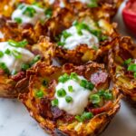 These crispy and cheesy Potato Cups are a perfect side dish or snack, featuring grated russet potatoes combined with cheddar, Parmesan, sour cream, and green onions. Baked to golden perfection in a muffin tin, they offer a delightful combination of creamy, cheesy, and crispy textures that everyone will love.