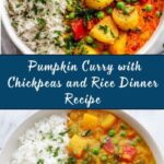 This Pumpkin Curry with Rice is a warm, comforting dish filled with aromatic spices, tender pumpkin, creamy coconut milk, and protein-rich chickpeas. Perfect for a cozy weeknight meal, it combines vibrant flavors and nourishing ingredients served over fluffy basmati or jasmine rice.