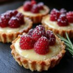 Fresh raspberries and chopped pistachios are classic garnishes for these tartlets, enhancing both beauty and taste. You can also add a light dusting of powdered sugar or a sprig of fresh mint to add a pop of freshness and color for a perfect seasonal touch.