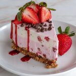 Fresh strawberry halves scattered atop the whipped cream add a vibrant, juicy burst that’s visually stunning and delicious. You can also add a sprinkle of finely chopped mint leaves for a subtle herbal pop or gently dust some powdered sugar for a touch of elegance. The balance between creamy cheesecake, airy topping, and fresh fruit is what makes this dessert shine.