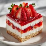 - Serve: Before serving, garnish the top with the reserved strawberry jam and sliced fresh strawberries to add freshness and a pop of color.