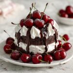 In a clean mixing bowl, whip the heavy cream with powdered sugar and vanilla extract until you achieve soft peaks. This whipped cream is not only pillowy but lightly sweetened, the perfect balance to the bold cocoa and lively cherries waiting to come.