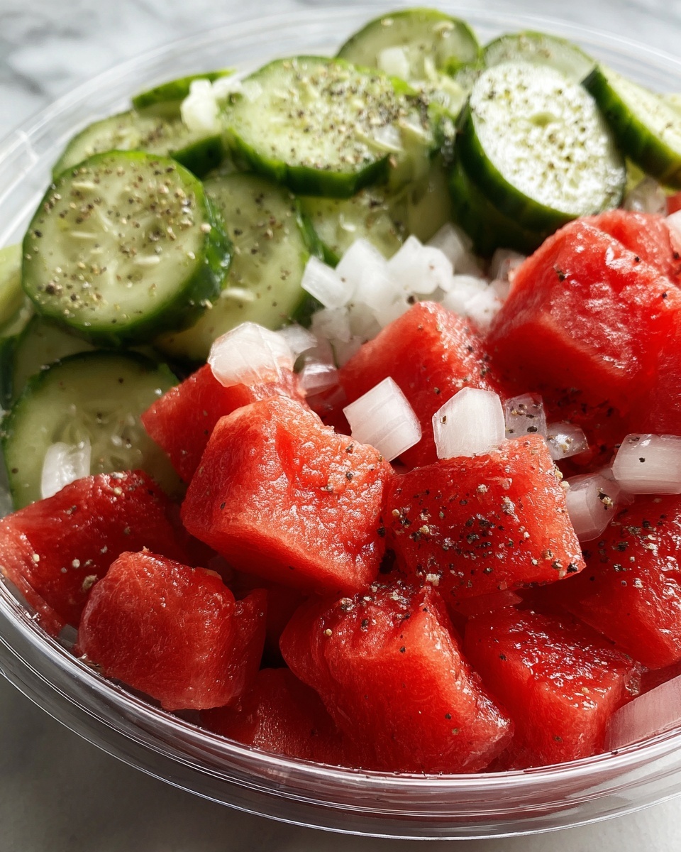 For a fun twist, serve this Watermelon & Pickle Snack Recipe layered in clear glasses or mini mason jars to show off its colorful layers. You can also thread watermelon cubes and pickle slices onto small skewers for easy-to-eat finger food at parties. Presentation makes this charming little snack all the more inviting.