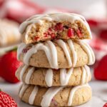 Delight in these White Chocolate Raspberry Cookies, featuring soft, buttery dough filled with sweet raspberry jam and topped with a drizzle of white and pink melted chocolate. Perfectly baked to golden edges, these cookies offer a burst of fruity flavor with every bite, balanced by creamy white chocolate decoration.