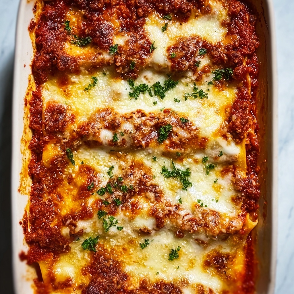 Bake the covered lasagna for 25 minutes. Then remove the foil to let the cheese on top brown and bubble beautifully in the oven for another 20 to 25 minutes. Once baked, allow the lasagna to rest for 15 minutes before slicing. This resting time helps the layers set firmly for neat, satisfying servings.
